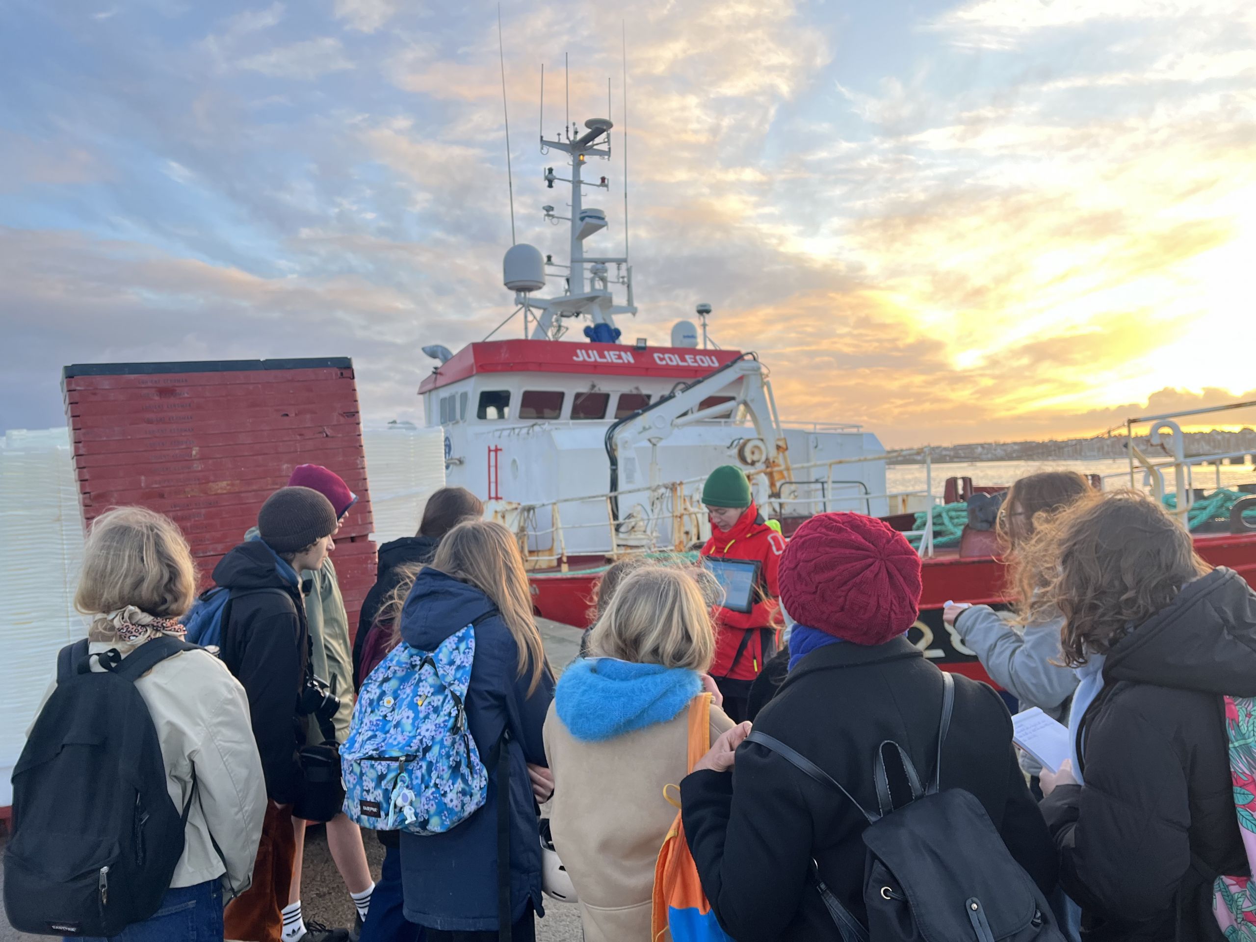 La matinée a été consacrée à la découverte du port de pêche de Lorient, deuxième port de pêche français et le n°1 en Bretagne. : observation des navires et des techniques de pêche, visite de la criée, d’un atelier de marée et rencontres avec les mareyeurs pour comprendre ainsi les différentes étapes de la filière du poisson, de la capture à la consommation.