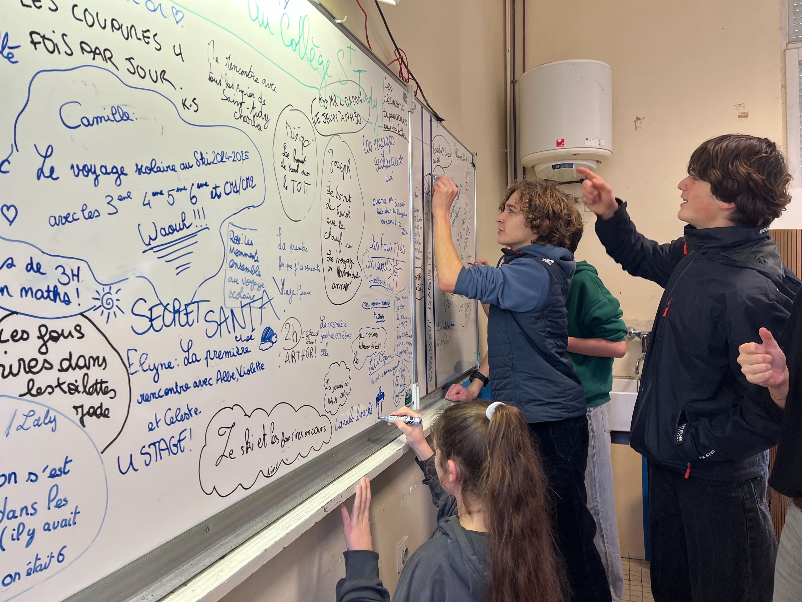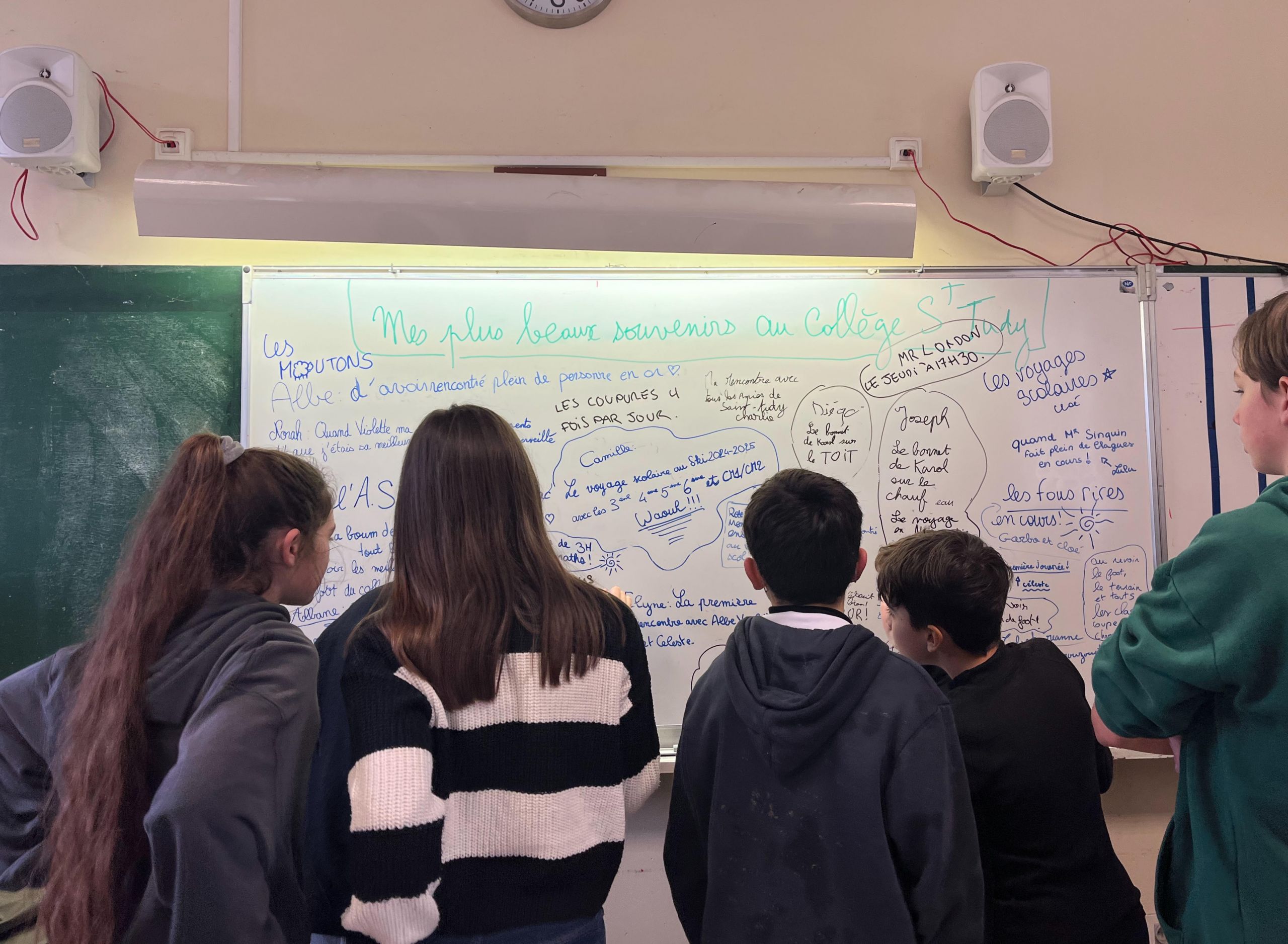 Lors de la dernière journée de cours, les élèves ont souhaité dire au revoir symboliquement à leur collège en laissant l’empreinte colorée de leur main, accompagnée de leur prénom, comme un dernier signe d’attachement. Des souvenirs et anecdotes marquant leur parcours de la 6e à la 3e ont également été partagés au tableau, offrant un moment chargé d’émotion. La journée s’est prolongée par un temps convivial en soirée, réunissant parents, familles et anciens membres de la communauté éducative autour d’images de la dernière kermesse photographiée par Focale au collège et des photos de portraits et photos de classe. Un moment de retrouvailles apprécié, avant de tourner une page et d’en ouvrir une nouvelle avec l’inauguration prochaine du nouvel établissement.