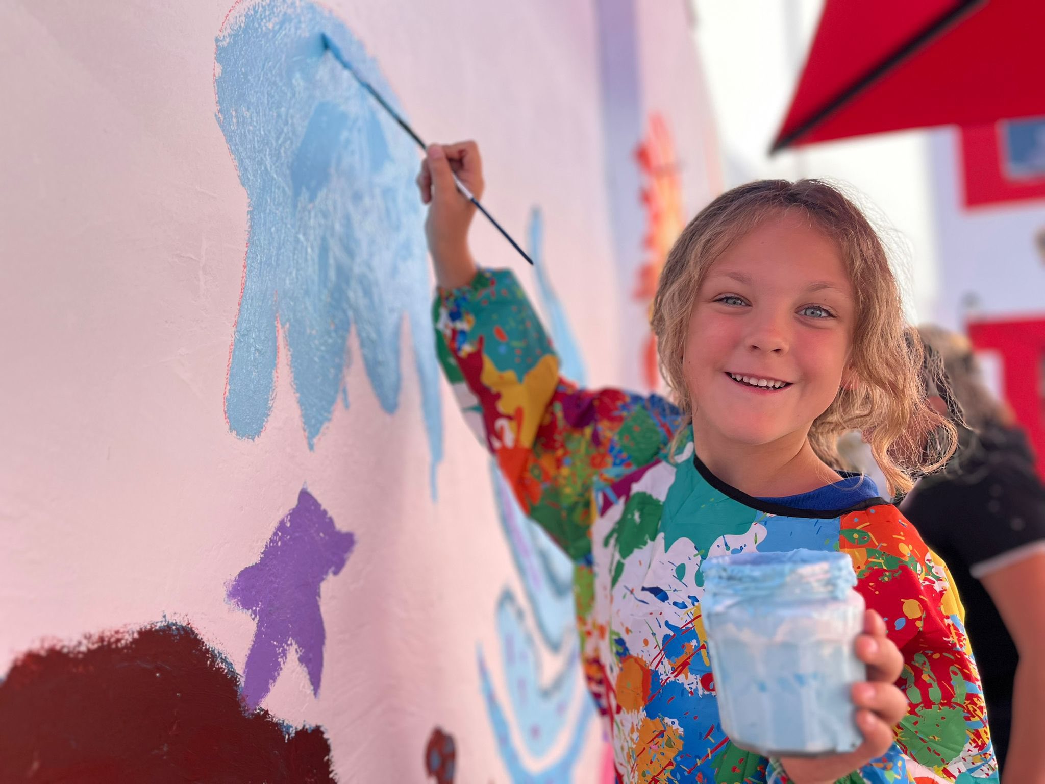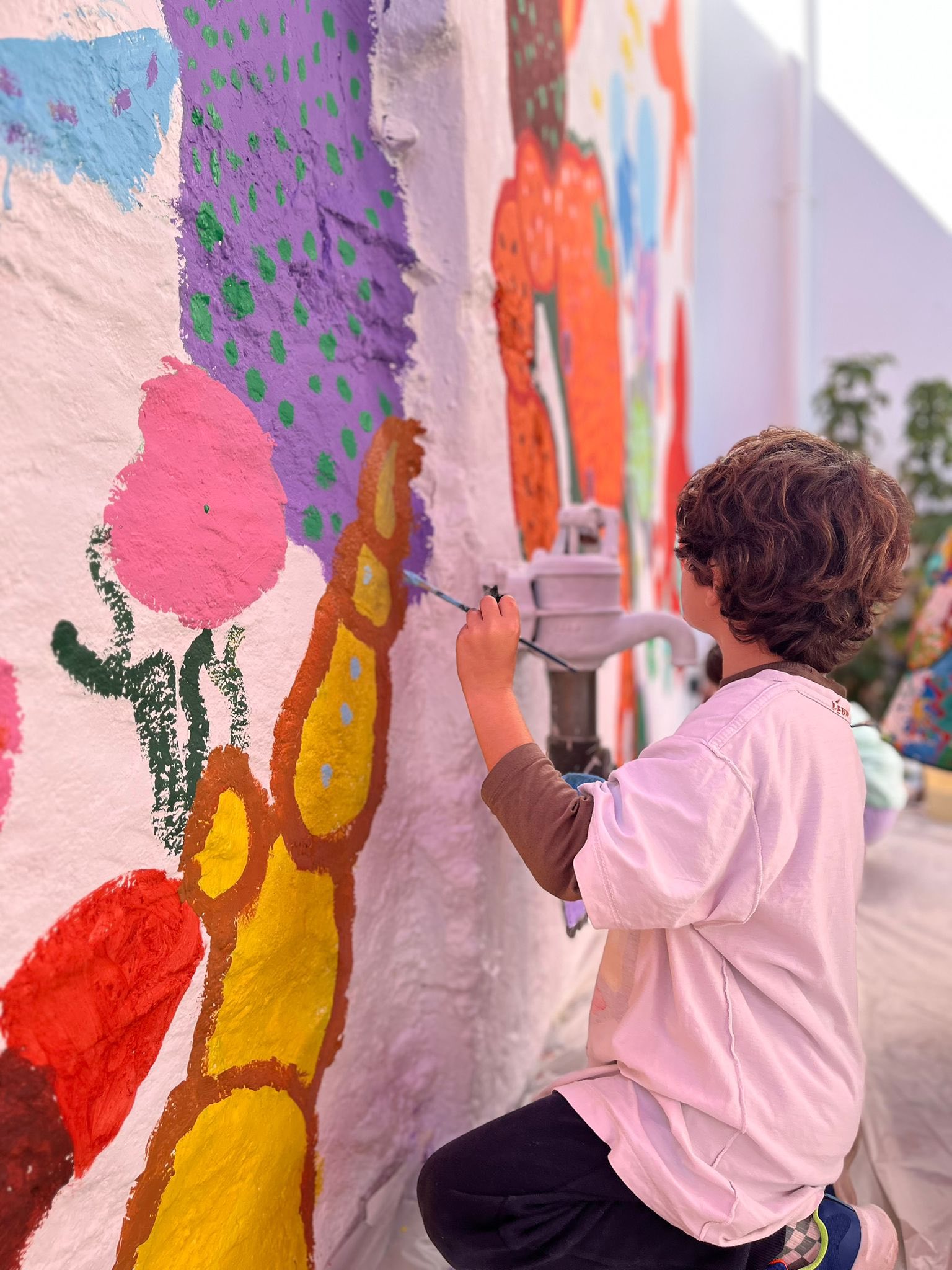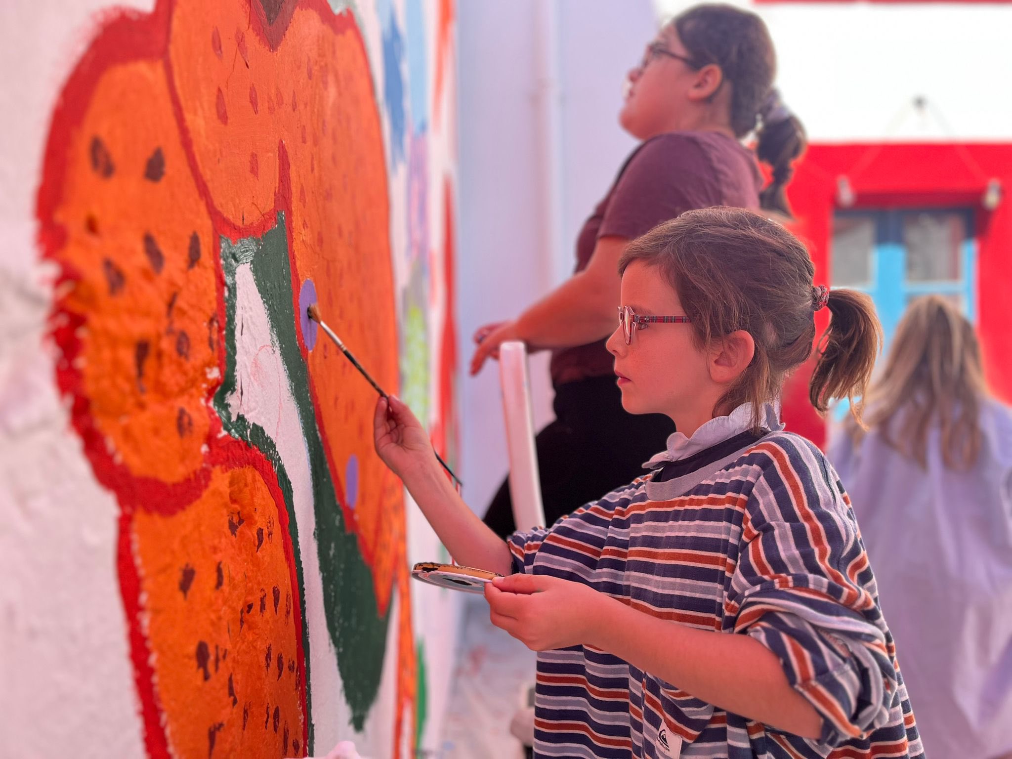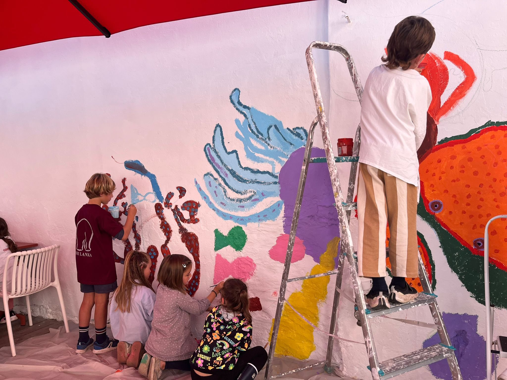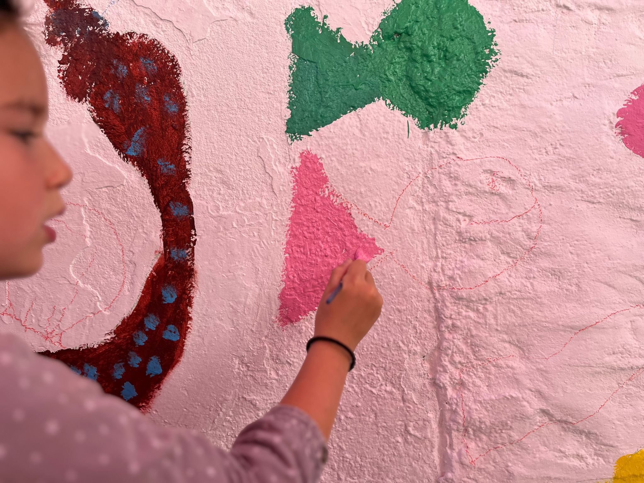 Vendredi dernier la classe de cycle 2 est allée compléter la fresque débutée par l’école publique.