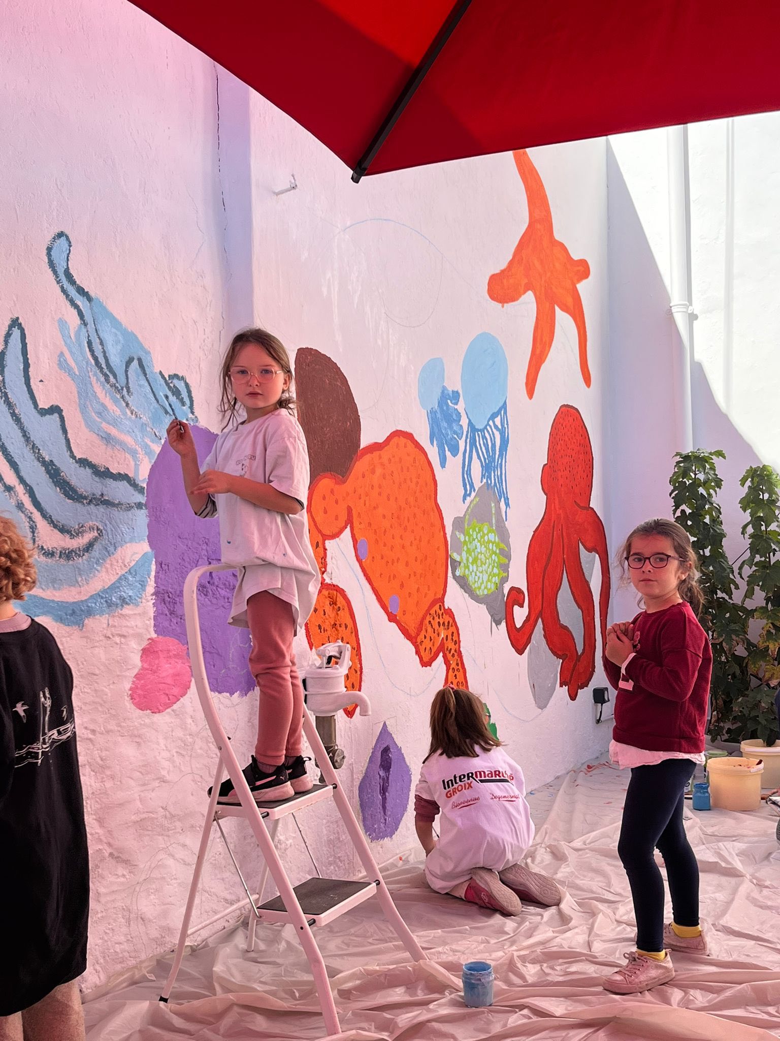 Les élèves ont pu laisser place à leur imagination et peindre en géant les animaux observés à marée basse avec Anne Zeum. Ils sont plus que ravis d’avoir pu contribuer à ce projet !